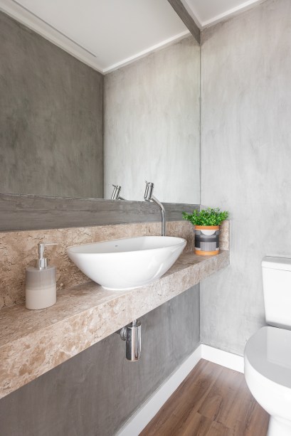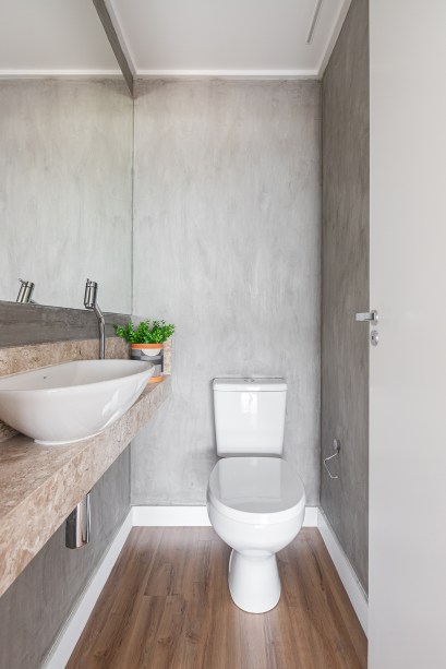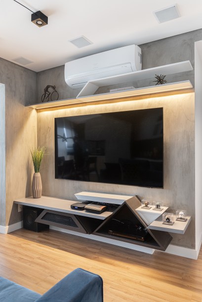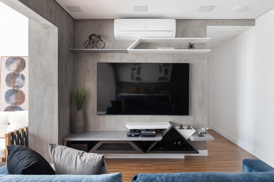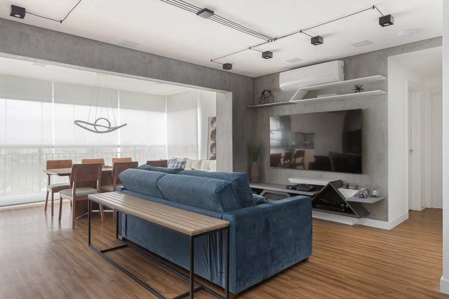 Paredes de cimento queimado dão ar masculino e moderno a este apê de 86 m²