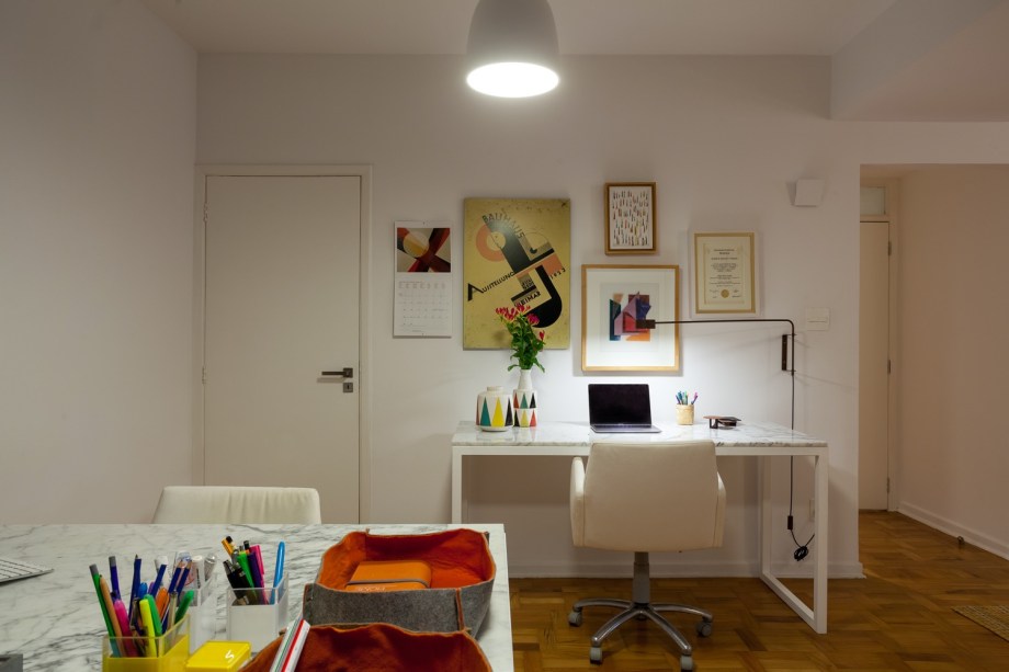 Depois de passar por transformações em sua vida pessoal, o arquiteto e restaurador Felipe Carolo resolveu também mudar de casa. Ele morava em um apartamento pequeno de 50 m² e mantinha um escritório no mesmo bairro. Então, quando resolveu partir para um novo imóvel, a ideia era que ele servisse para morar e trabalhar. “Depois da experiência de viver em um lugar pequeno e tendo meu escritório em outro endereço, percebi algumas coisas. Minha vida é muito dinâmica e com uma rotina totalmente mutável e sazonal, o que faria mais sentido era eu perder menos tempo nos percursos, ja que fico na rua muitas horas do dia”, revela o morador.