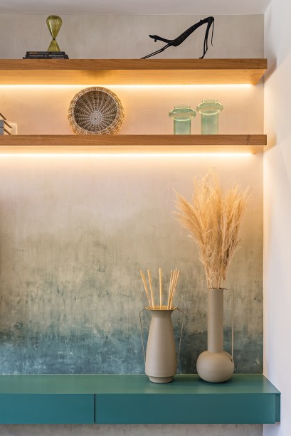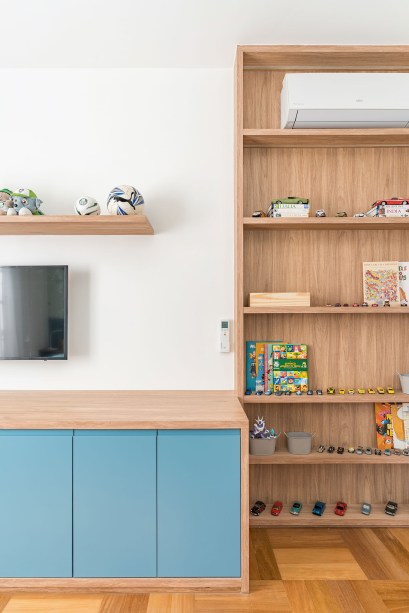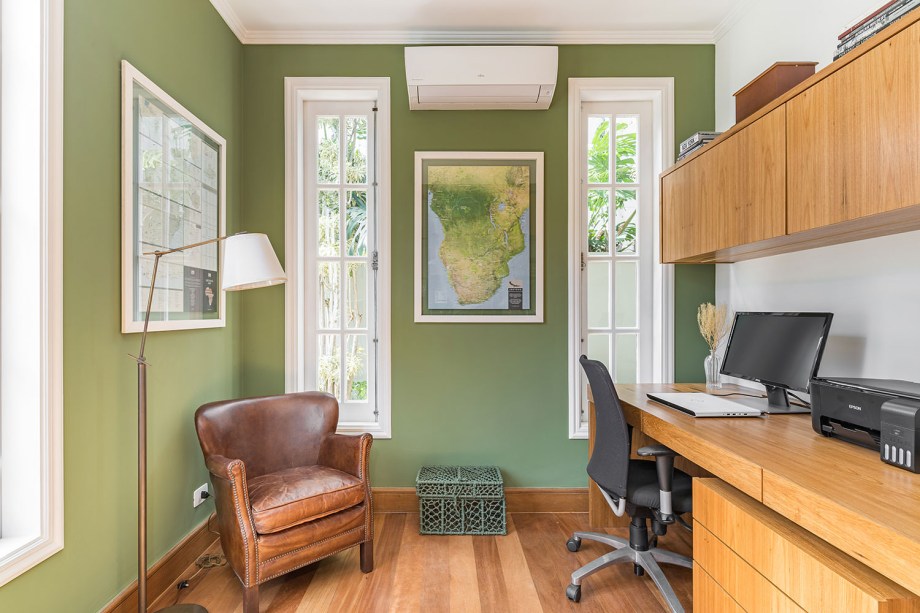 “Foi um desafio projetar o escritórios, pois sua localização limitava a integração. Mantive a harmonia visual para dialogar com o restante dos ambientes”, diz Bia.
