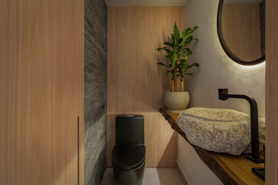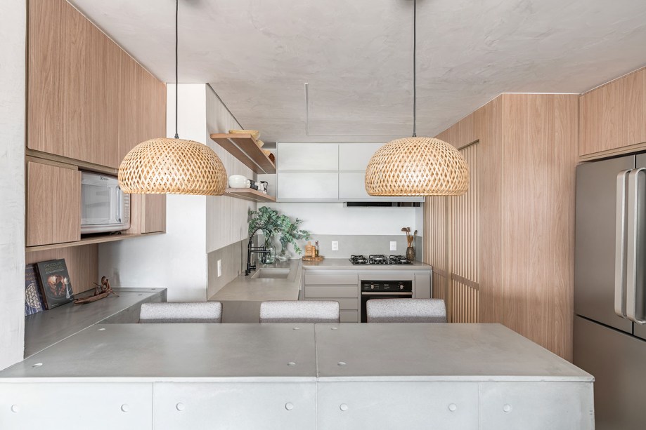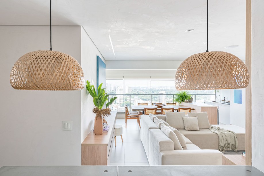 Apesar de viver e trabalhar na cidade, o casal de moradores deste apê de 120 m² tem uma conexão muito forte com o litoral e a natureza. Tanto que o projeto pedido à arquiteta Daniela Coli foi um refúgio repleto de biofilia e no estilo rústico chic. “Em nossos bate-papos com os clientes falávamos muito em ‘Praia Urbana'”, conta a profissional.