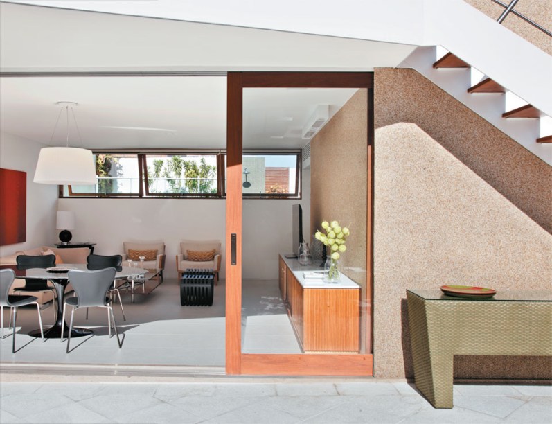 Logo que surgiu a possibilidade de construir uma sala de estar (37 m²) no terraço desta cobertura na zona sul carioca, a proprietária se empenhou em pesquisar ideias que tornassem o espaço especialmente convidativo e integrado. “Sabia que podia ser um lugar confortável, com detalhes bacanas. Mas, muitas vezes, o último andar de um prédio torna-se quente e abafado. Se isso acontecesse, ninguém se daria ao trabalho de subir”, lembra ela. Quando convocou os arquitetos Marina Lage e Fabrício Silveira, da Tamabi, perguntou se eles repetiriam aqui a solução adotada num projeto anterior, publicado numa revista especializada: forrar a laje de concreto com vegetação, criando um telhado verde. “A ideia nos entusiasmou. Porque, além de eles ganharem um simpático jardim nas alturas, seria a melhor forma de conseguir conforto térmico na sala embaixo”, aponta Marina. Entre a varanda e a sala de estar, deixou-se uma passagem ampla, com portas de correr. Asesquadrias generosas ficam completamente embutidas na alvenaria quando recolhidas. “Quanto menos barreiras entre as áreas interna e externa, melhor. Esse é o segredo para manter o contato com o lado de fora, reforçando a utilização do espaço como um todo”, completa Fabrício.