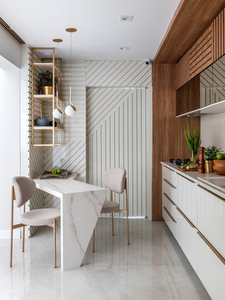“Para esse projeto, imaginamos os ambientes harmônicos e aconchegantes, sempre colocando à frente a praticidade e a funcionalidade para facilitar o dia a dia da família. Em todos os espaços, pensamos em pontos de destaque sofisticados e luxuosos”, conta a arquiteta.
