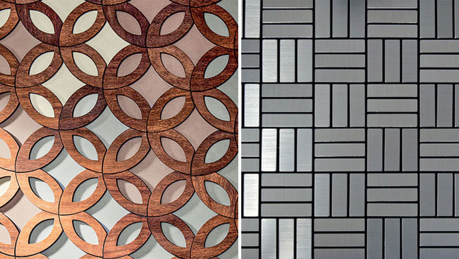 Que tal um faça você mesmo? Painéis autocolantes dispensam mão de obra especializada e argamassa de assentamento. 1. Mais de 60 modelos da Mosarte, indicado spara paredes internas de alvenaria, drywall ou MDF, sem umidade, são dotados do Semplice: adesivo super-resistente para fixação de mosaicos de mármore e madeira. A versão Pétlas Bege mede 13,4 x 26,7 cm e custa R$ 70,42. 2. Da Terzian, as placas adesivas Aludesign, com pastilhas de alumínio, podem forrar áreas secas e úmidas, internas ou externas. O modelo C2468 tem 29,5 x 29,5 cm e sai por R$ 275 o m².