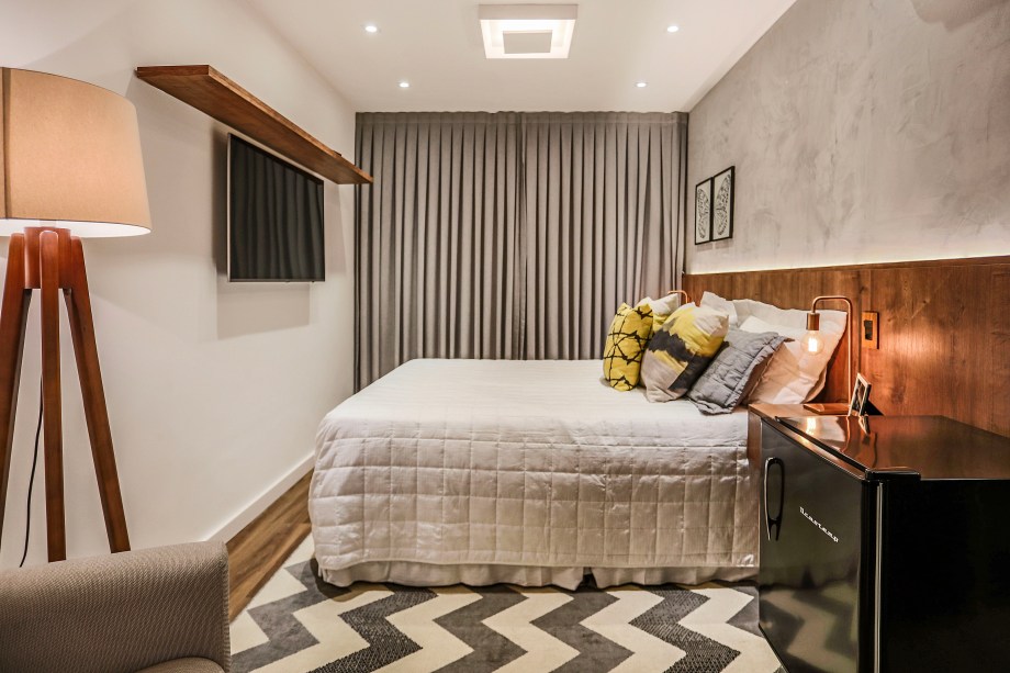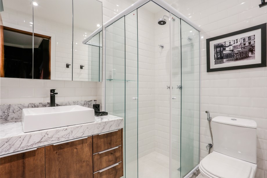 É essa mesma atmosfera aconchegante que se repete no quarto do casal e no banheiro clean.