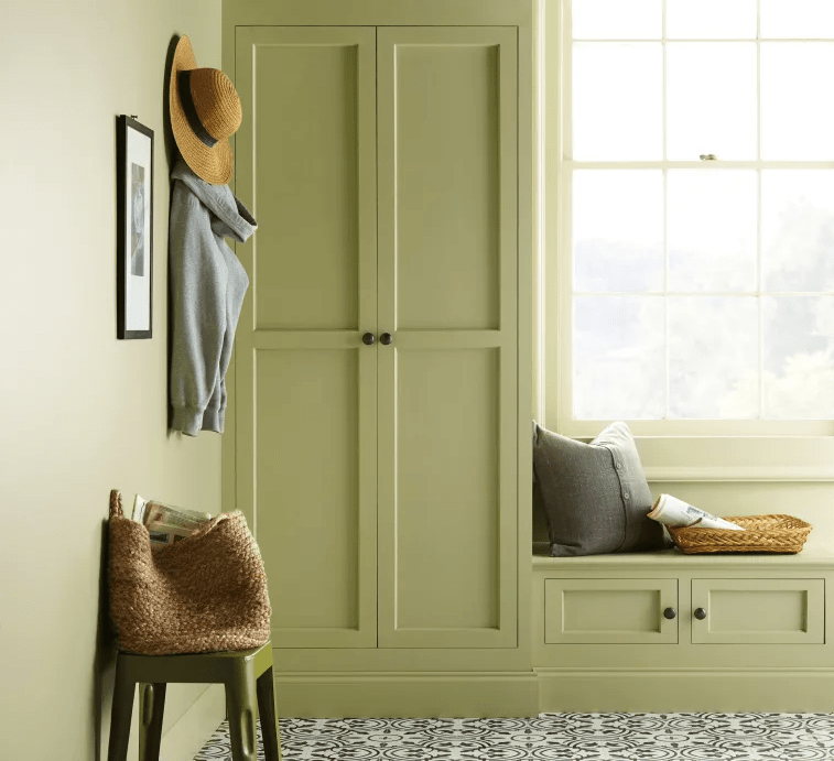 Os benefícios da saúde de passar um tempo na natureza estão bem documentados, e a equipe da Behr estava procurando trazer essa sensibilidade para dentro de casa também. “É uma cor de força vital”, diz Woelfel.