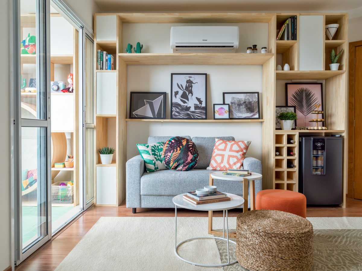 Receber os amigos para um happy hour sem perder os filhos pequenos de vista. Esse foi o desafio que as arquitetas Daniele Okuhara e Beatriz Ottaiano, da Doob Arquitetura, enfrentaram na reforma desta sala. Os moradores são pais de um casal de filhos, de 6 e 4 anos, e não conseguiam achar uma solução para ter mais espaço para as crianças, já que o apartamento é menor do que o anterior e o quarto dos pequenos não comporta uma área para brincadeiras.