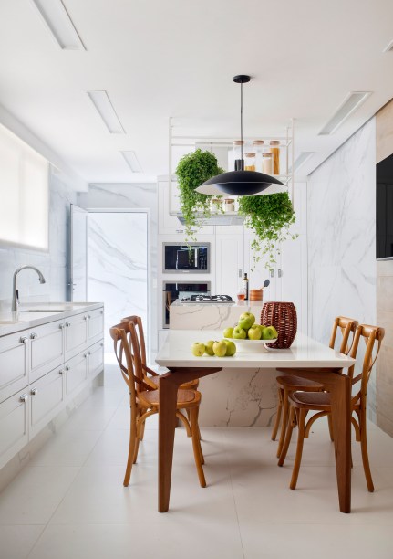 “O apartamento já apresentava uma planta muito boa. Ele é amplo e possui sala e cozinha enormes, que compreendem 60% do imóvel. Nós, então, adaptamos o espaço aos tempos atuais e às necessidades dos clientes”, afirma Bernardo.