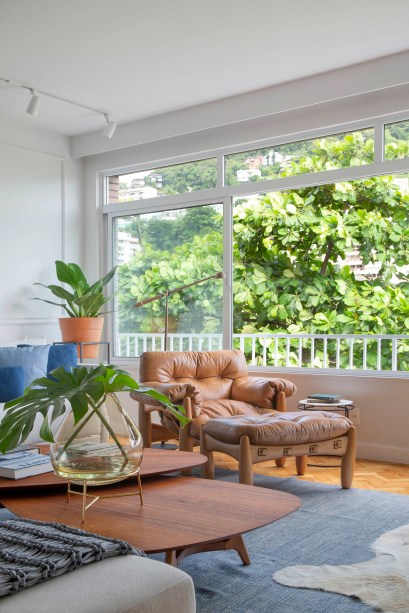 A disposição dos quartos foi alterada, deixando espaço suficiente para a criação de um closet para o casal, um banheiro para a suíte do filho e um lavabo. Além deles, o apartamento ganhou um home office e uma sala de almoço. No mobiliário estão presentes peças de grandes designers brasileiros, modernos e contemporâneos, como Sergio Rodrigues e Jader Almeida.