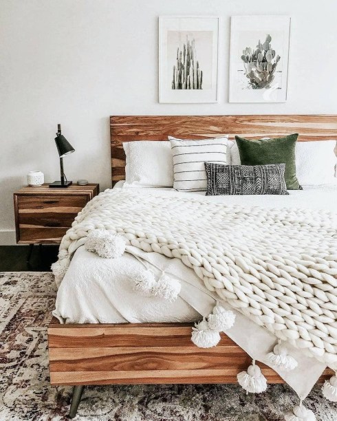 A textura pode não ser a primeira coisa que vem à mente quando você pensa em aconchego. No entanto, introduzir em seu espaço residencial é uma ótima maneira de acrescentar interesse a um design minimalista. Você pode fazer isso utilizando materiais quentes e naturais, como madeira e lã, ou incluir diferentes tipos de flores para um pequeno toque de cor.