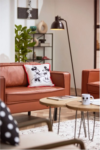 Entre as peças mais sofisticadas da coleção Disney Home no lançamento está uma releitura em tamanho real do Mickey Mouse criada pela designer de interiores Kelly Hoppen, juntamente com figuras do estúdio de “escultura pop” Leblon Delienne.