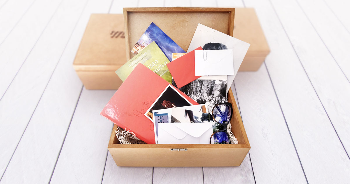 Se você é o tipo de pessoa que gosta de guardar objetos que marcaram um momento importante, como um ingresso de cinema, uma flor ou algo que foi importante em um primeiro encontro, porque não reunir todos esses itens em uma caixa e presentear o amado ou a amada?