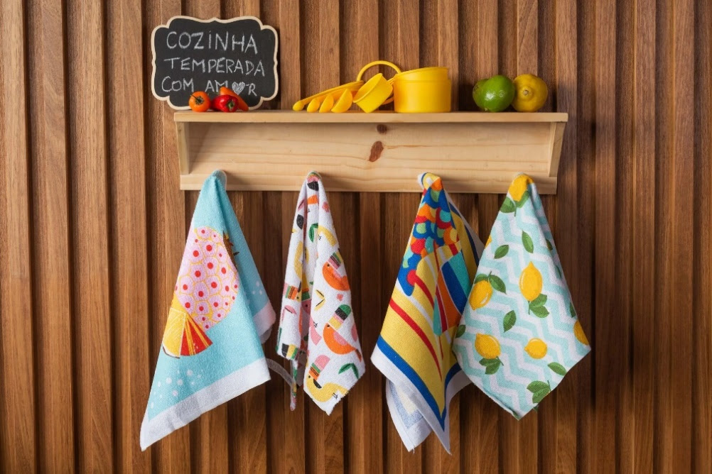O recomendado é que haja diferentes tipos de pano na cozinha: o de prato tradicional, utilizado para secar as louças molhadas, um para enxugar as mãos e outro para pegar panelas quentes e o pano de pia. “Cada um deles pode ter cores diferentes, para impedir que você os confunda. A recomendação é trocar diariamente, assim eles não ficam gordurosos, manchados ou acumulam bactérias”, afirma.