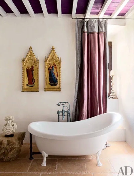 28/41A banheira é de calcário com acabamento à mão.(Nikolas Koenig/Architectural Digest)