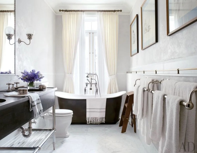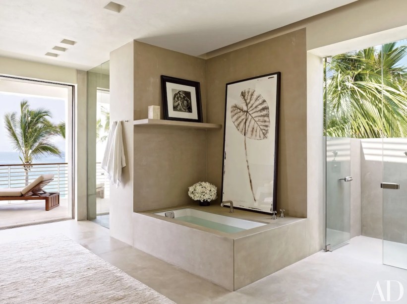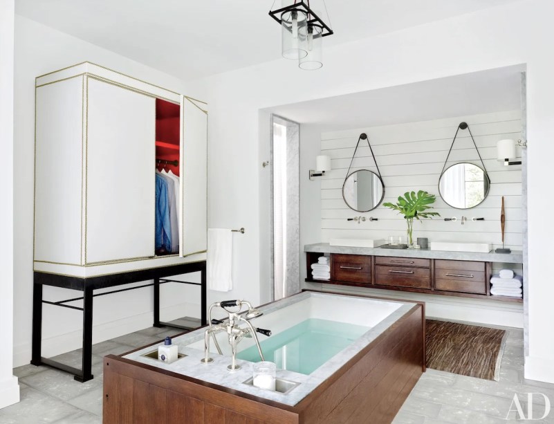 Designers como Axel Vervoordt, David Nettoe Shawn Henderson incorporaram banheiras de todos os tipos, de versões independentes a criações no estilo japonês. Reunimos alguns projetos impressionantes que apresentam peças atraentes para um banho elegante. Veja abaixo: