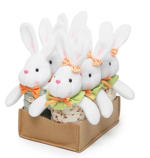 Fechando com muita meiguice a decoração estão os enfeites de madeira, pelúcia e cerâmica. Eles podem ser colocados em praticamente qualquer lugar, até mesmo para compor a mesa de Páscoa. Com certeza, crianças e adultos vão se apaixonar por estes coelhinhos: há amarelos, brancos, de roupinha, chocando ovos e até uma caixinha com vários deles!