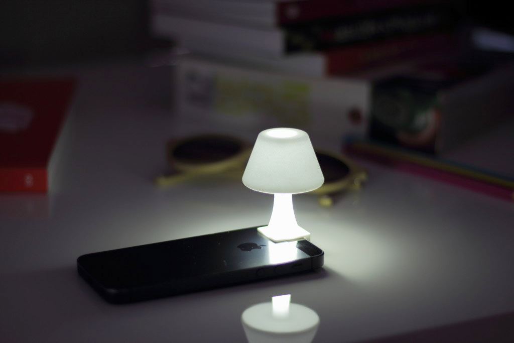 Feito em uma impressora 3D, este pequeno abajur é um acessório cheio de charme para os fãs do iPhone